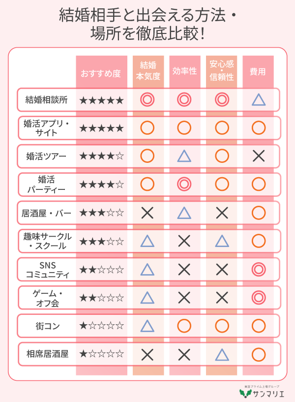 結婚相手との出会い方ランキング!おすすめの場所や婚活方法を解説