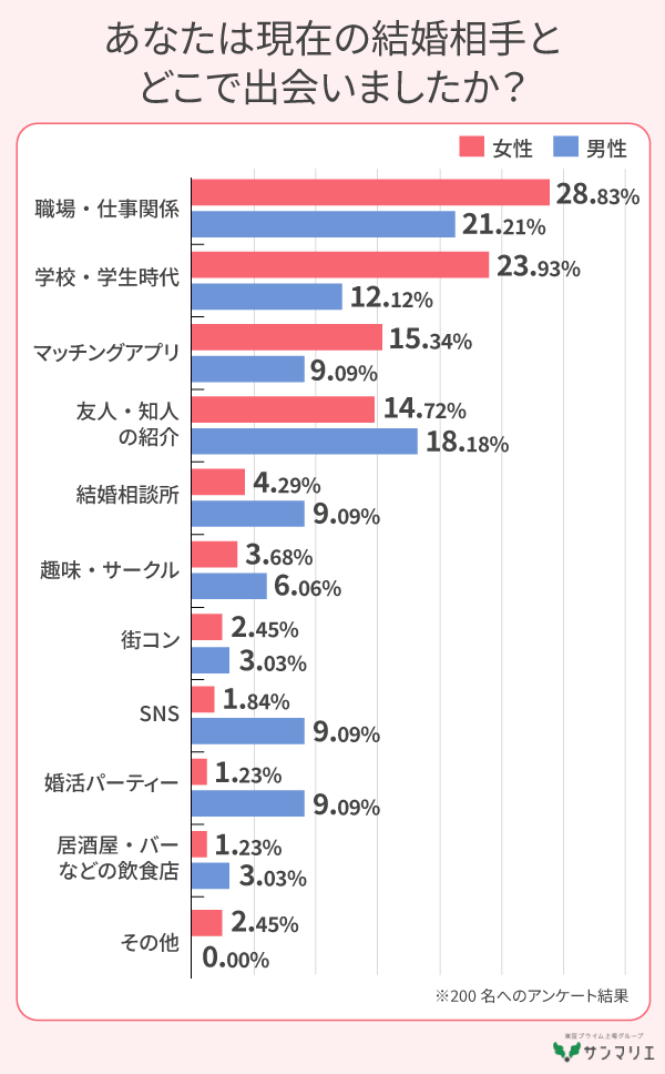 - 結婚相手との出会いのきっかけランキング【既婚者200名に調査】