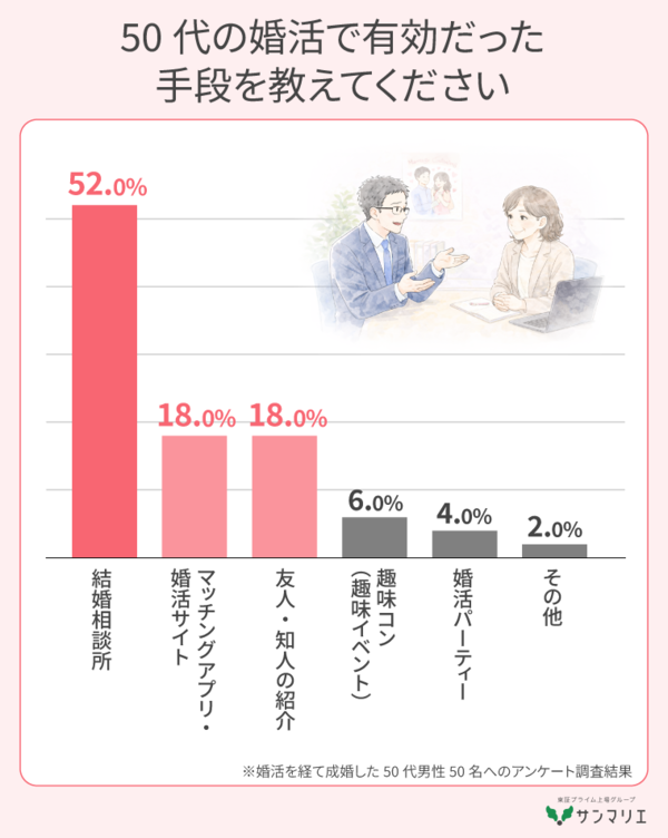 その実態を明らかにするため、婚活を経て成婚に至った50代男性50名を対象に独自のアンケート調査を実施しました。
