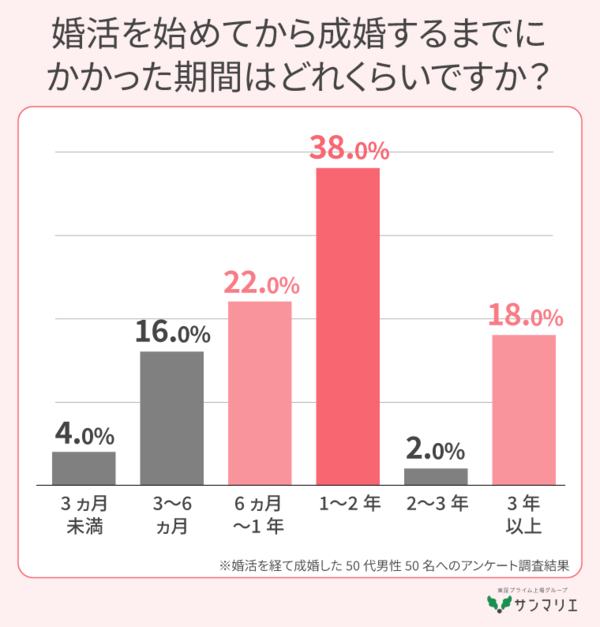 こうした結果から、成婚までにかかる期間は人それぞれであり、活動期間の長さよりも、自分に合った相手と出会えるかどうかが重要だといえるでしょう。